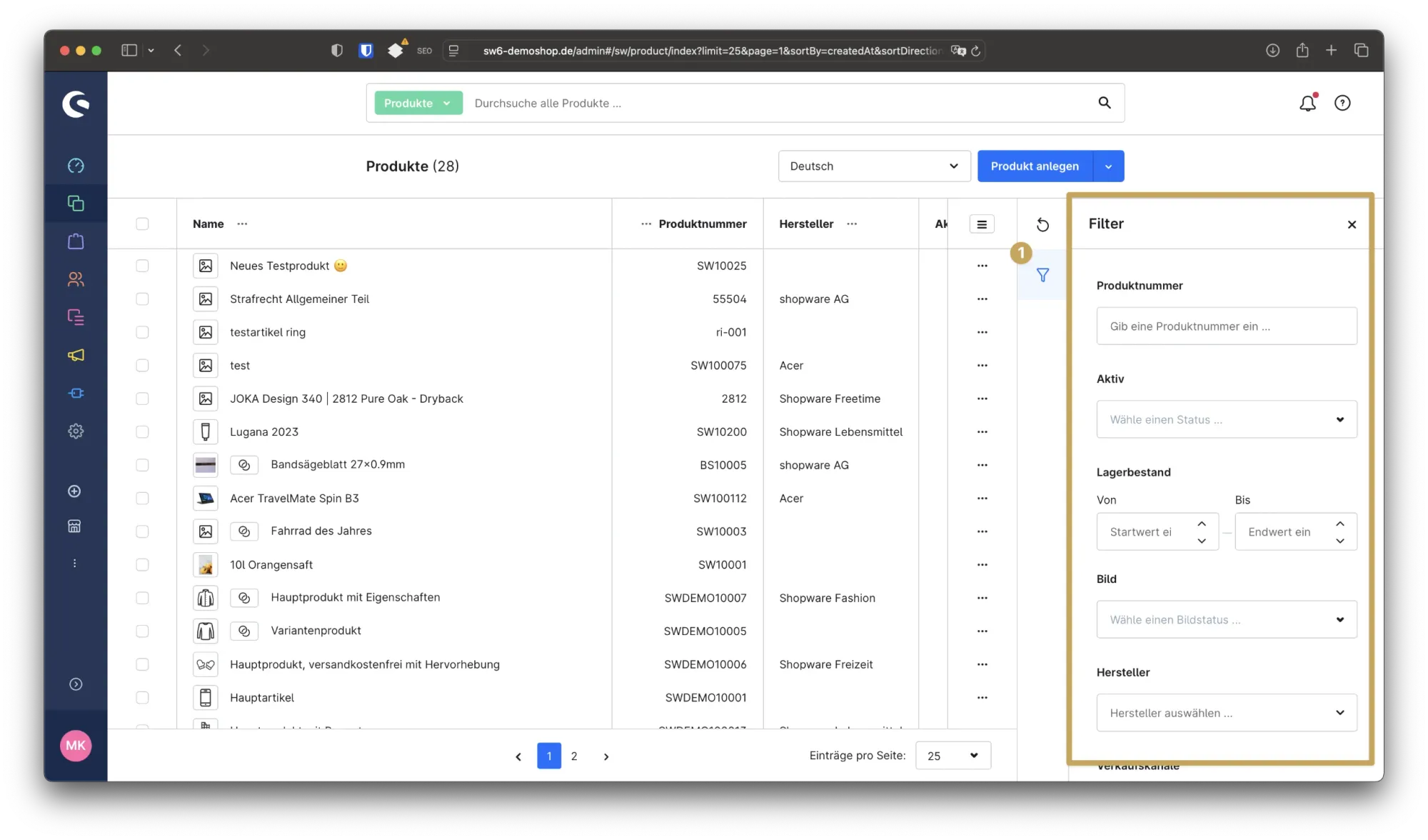 Shopware bietet dir eine große Auswahl an Filtern, mit denen du genau die Produkte findest, die du suchst. Das ist besonders hilfreich, wenn dein Sortiment umfangreich ist.
