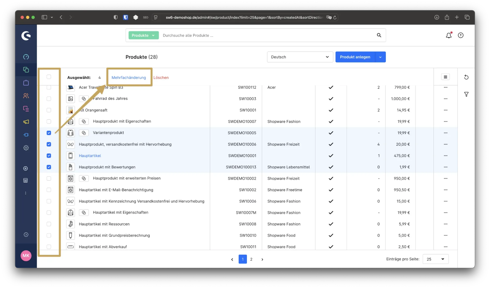 Viele Produkte auf einmal bearbeiten: Die Mehrfachänderung